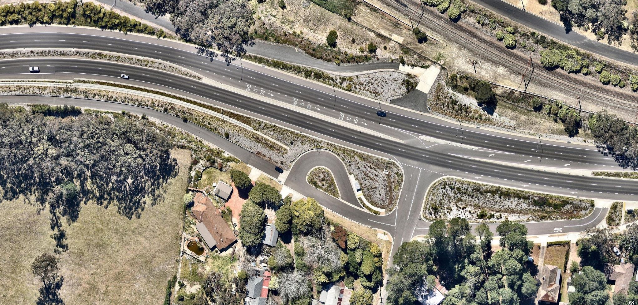 Improvements to the community’s interaction with the highway, including enhancing local road connectivity, expanding safe pedestrian and bicycle facilities, and providing well located local bus stops were of prime importance in this project. The built outcome features a well landscaped corridor which will grow to strengthen the natural landscape qualities of Bullaburra and its location within the Blue Mountains.